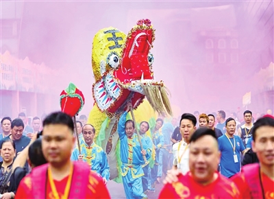 活动不仅上演了非遗节目古城缩龙表演、年丰狮舞、游龙仪式及包粽子体验和比赛等节目,还在沿河路上设置了城市IP形象“滋滋”、非遗打卡体验区和琳琅满目的农特产品商贸促消费展区。现场吸引了附近十里八乡的村民和游客前来打卡,处处一片热闹欢腾景象。