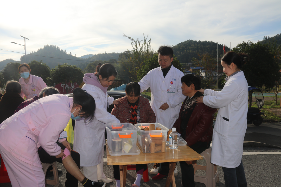 健康服务专区内,医疗团队分工明确、高效协作,为村民带来全方位健康保障义诊:现场有序开展抽血、B超、心电图等专项检查,提供血压测量、血糖检测等基础服务;健康咨询小组耐心为村民分析健康状况,量身定制饮食、用药及康复指导方案;中医理疗推广环节中,工作人员根据村民实际需求,开展拔火罐、推拿等特色服务,同时向村民发放健康知识宣传单,多维度普及健康常识,切实满足村民多样化健康需求。