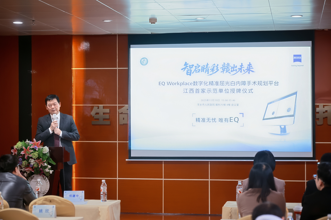 大江新闻讯 钟进文报道:11月19日,EQ Workplace数字化精准屈光白内障手术规划平台江西首家示范单位授牌仪式在萍乡市人民医院举行。据了解,该平台通过数智化技术重构屈光白内障诊疗流程,为萍乡及周边地区眼科患者带来更精准、更高效的健康服务,标志着当地眼科诊疗迈入数智化新时代。